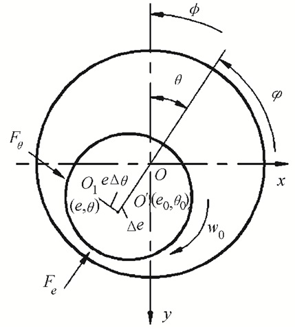 如图 3所示,转子在外载荷的作用下平衡于O′位置,在(Δe, Δθ)的扰动下,轴心位置移动到O1处,此时油膜力沿Δe的方向和垂直于Δe的方向分别为Fe和Fθ,