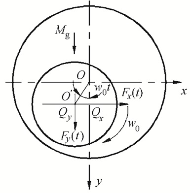 假设转子受到单一的偏心质量动载荷影响,eg为转子的质量偏心距,所以作用在转子上的不平衡载荷为: