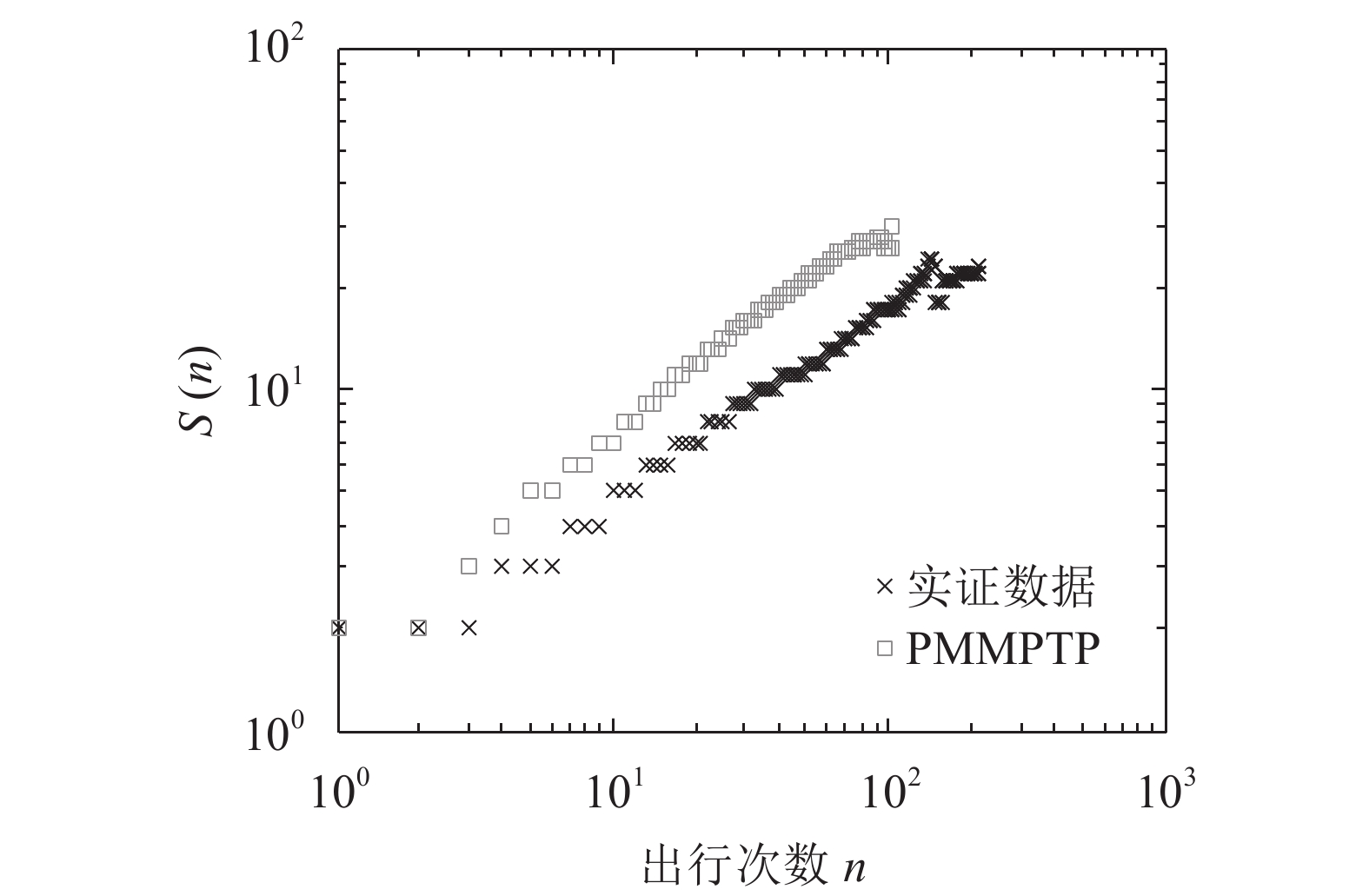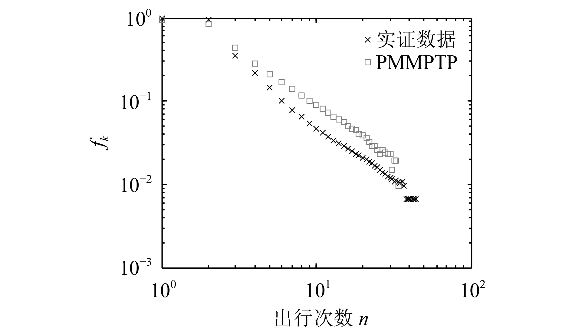 由于其他移动模型在建模时均未考虑旅客出行次数特性,而旅客的扩散等特性受出行次数影响,故现有模型无法重现民航旅客的出行次数标度特性和其他出行特性,因此对旅客特性模拟时仅使用了PMMPTP模型。