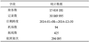 2)临时航线的开通具有不确定性,对研究旅客出行特性具有一定的影响,在实验数据集中删除了周航班飞行次数少于1次的航线。表1为实验数据集中的基本统计信息。