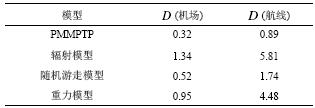 表2为各模型下机场吞吐量和航线吞吐量模拟的评价指标D。从表2中可以看出:PMMPTP模型在机场吞吐量和航线吞吐量模拟中均取得了最小的