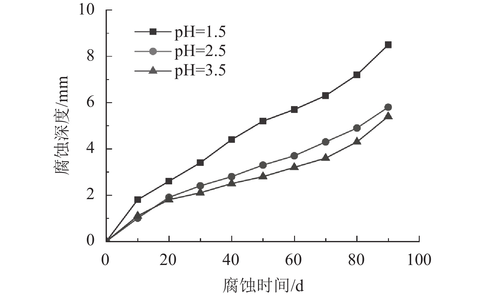 | 图4 混凝土腐蚀深度 Fig. 4 Corrosion depth of concrete as a function of corrosion time for the specimen corroded by the simulated acid rain solution |