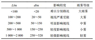 | 表1 能见度L与可视距离d关系 Tab. 1 Relationship between visibility and visibility distance |