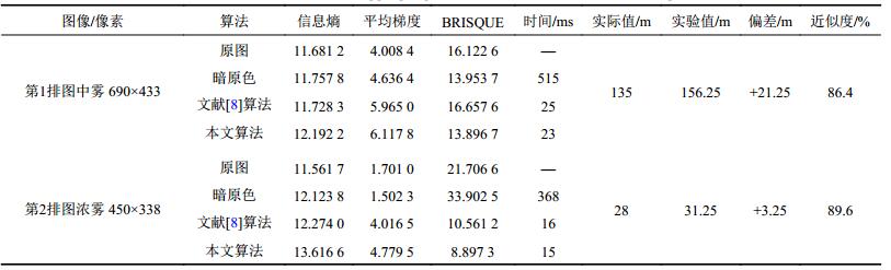 | 表3 不同去雾算法效果与耗时 Tab. 3 Different defogging algorithm effects and time-consuming |