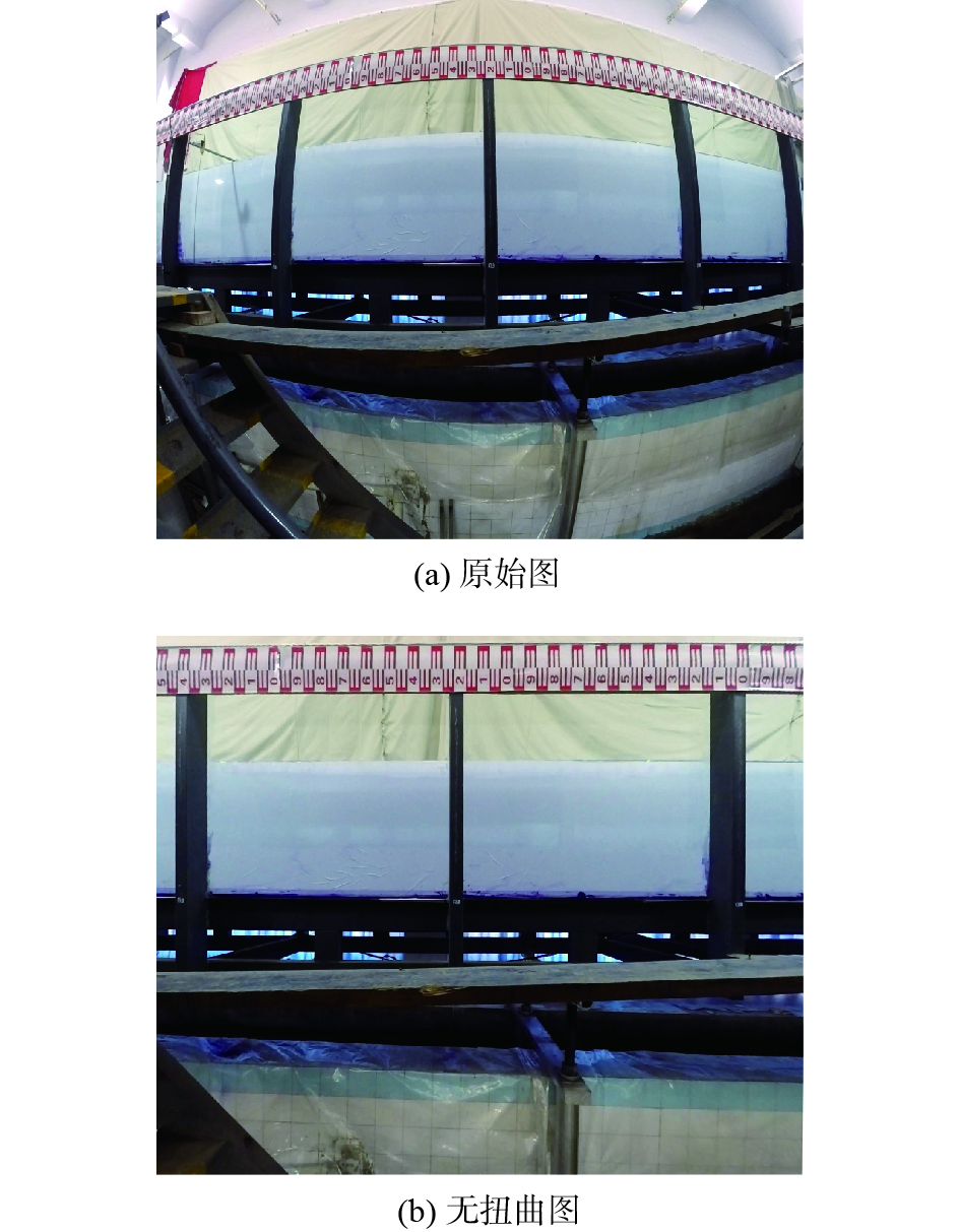 1 水深获取原理利用MATLAB文件获取水深需要对试验图片进行系列操作,由于透镜的结构特点,摄像机采用的宽画幅广角镜头会使图片产生桶形畸变效应,因此需要先标定摄像机,再处理图片以获取水深。