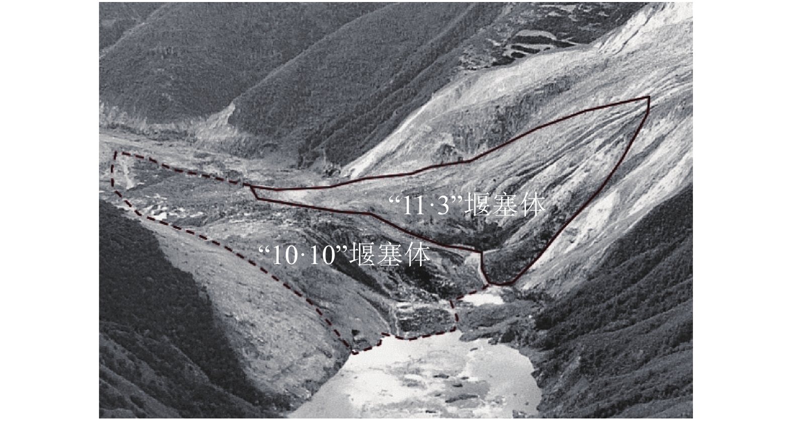 | 图1 两次滑坡形成的白格堰塞体 Fig. 1 Baige landslide dams formed by two subsequential landslides |