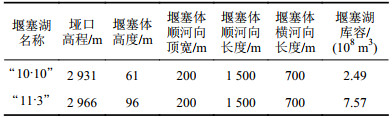 | 表1 白格堰塞湖形态特征 Tab. 1 Morphological characteristics of Baige dammed lakes |