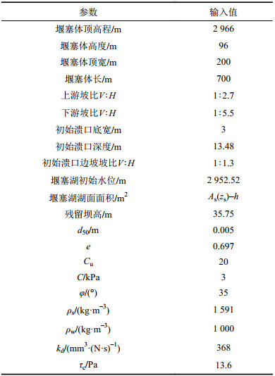 3 “11·3”白格堰塞湖溃决过程反演分析 3.1 输入参数