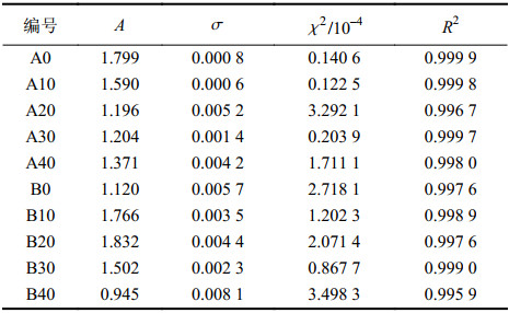 由图11可见,试验数据围绕在拟合曲线周围,表明拟合结果较好。其他各组拟合结果见表3。