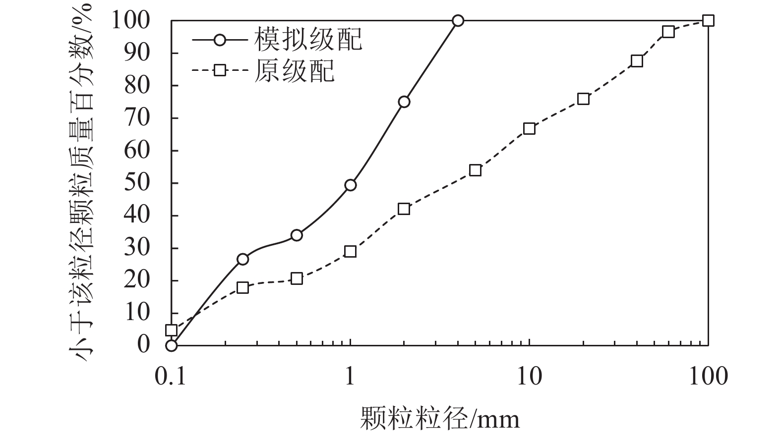 | 图2 模拟颗粒级配 Fig. 2 Particle size distribution |