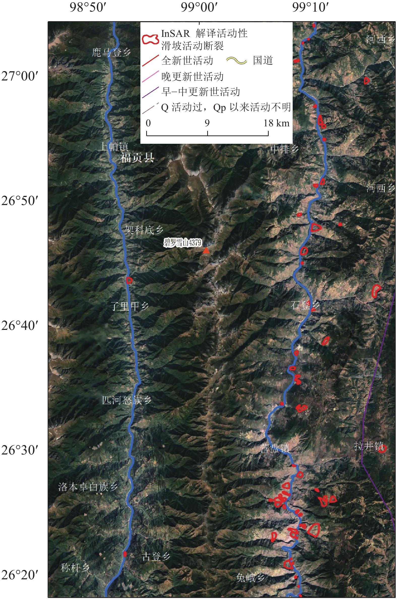 数据处理方面,为了大区域与处理工作量的平衡,未采用精确的PS–InSAR技术,会导致微小变形滑坡的漏识,经验估计本文解译的活动性滑坡变形速率≥10 cm/a。处理过程中发现,SAR数据角度、敏感度和观测时相的差异对斜坡变形结果具有较大影响。
