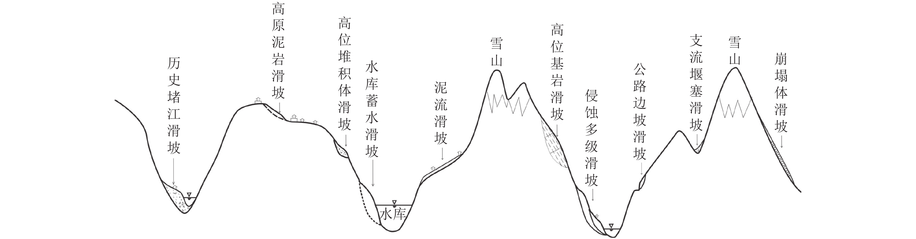 1)历史堵江滑坡是历史滑坡堵江的堆积体,包括溃坝残留部分滑体,如金沙江白格滑坡堆积体、竹巴龙地区的堆积体。