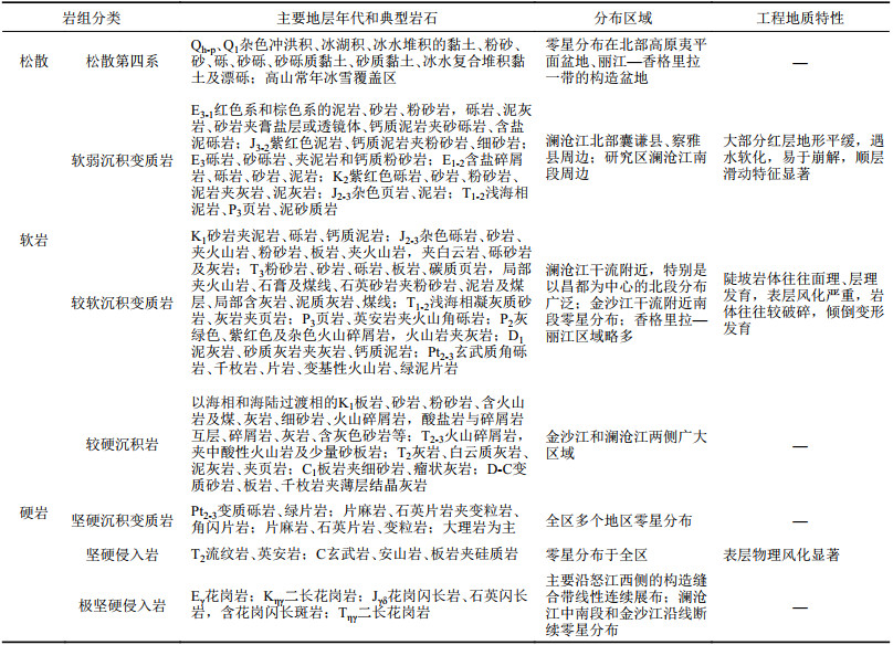 | 表1 研究区工程地质岩组的划分 Tab. 1 Division of engineering geological rock formation in the study area |