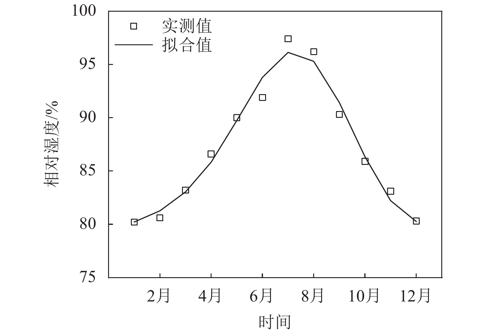 | 图9 大气相对湿度拟合曲线 Fig. 9 Fitting curves of relative humidity at atmospheric environment |