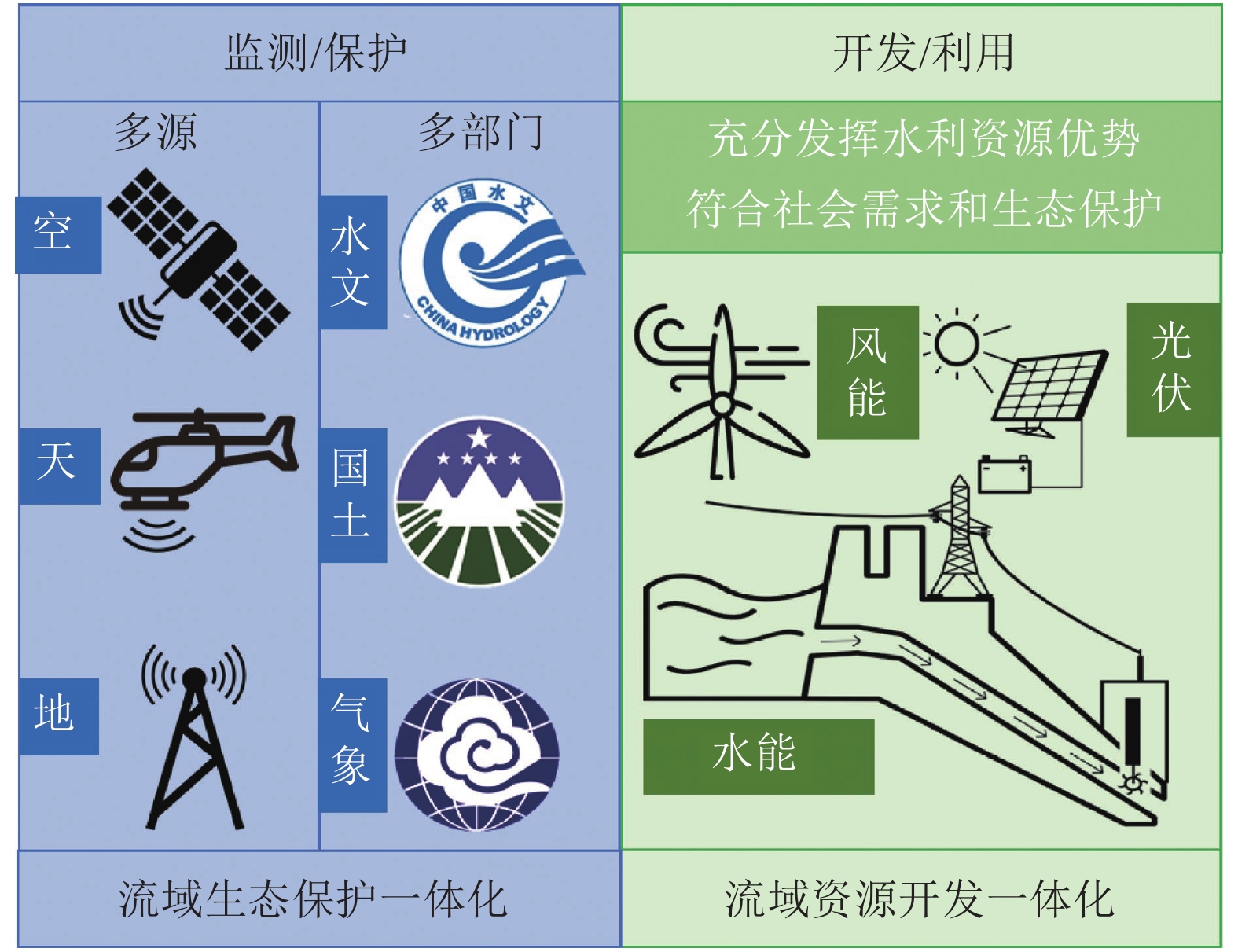 中国各大流域均存在多种水问题交织且日益严重的现象,如西北内陆河缺水严重,生态环境退化,地下水超采严重;黄河流域泥沙淤积,水资源总量短缺;长江流域上游生态退化而中下游水污染严重;珠江流域河口咸潮上溯问题严峻等[79]。流域的发展和保护涉及多部门、多学科、多因素、多数据、精准控制困难等诸多问题,为系统解决全流域水环境问题及综合开发难题,融入智慧水利技术,践行“流域统筹,综合发展”的流域一体化模式应运而生。建立一体化的流域监测网络,实现流域生态保护一体化,考虑全流域水利资源的合理利用开发量值,实现流域资源开发一体化,综合发展全流域,将极大地促进生态保护和合理化能源开发。