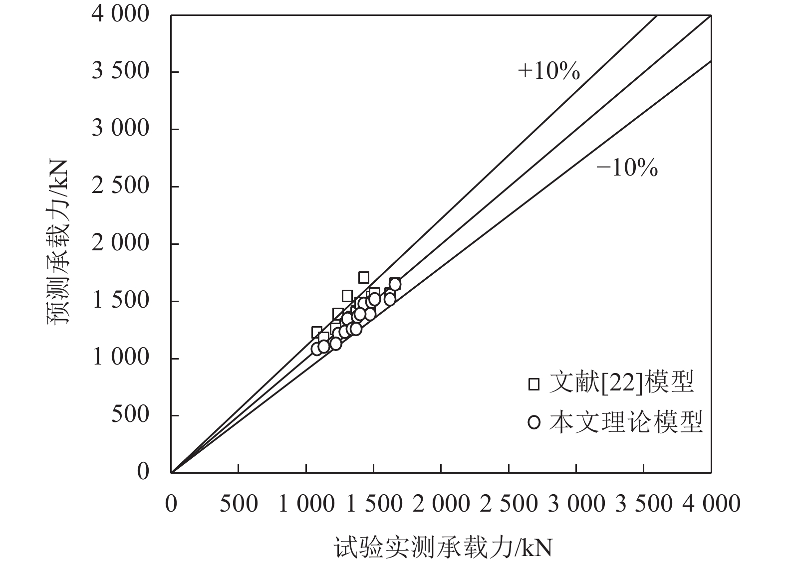 3) 两类预测承载力模型与试验实测值的对比得出:Nup∶Nu的平均值为1.05,标准差为0.066,变异系数为0.063;Nyc∶Nu的平均值为0.978,标准差为0.035,变异系数为0.036。该计算结果验证了本文理论模型的正确性。