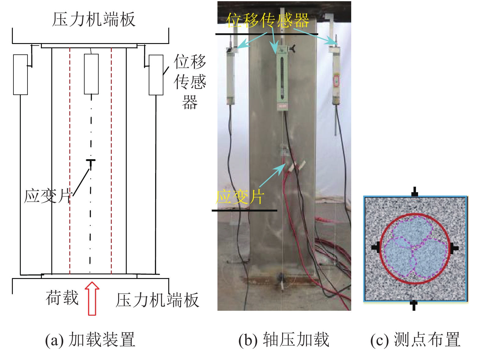 | 图5 试件加载装置及测点布置 Fig. 5 Loading setup for specimens and position of measuring points |