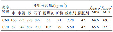 | 表2 新混凝土配合比及力学性能 Tab. 2 Mix ratio and mechanical behavior of new concrete |