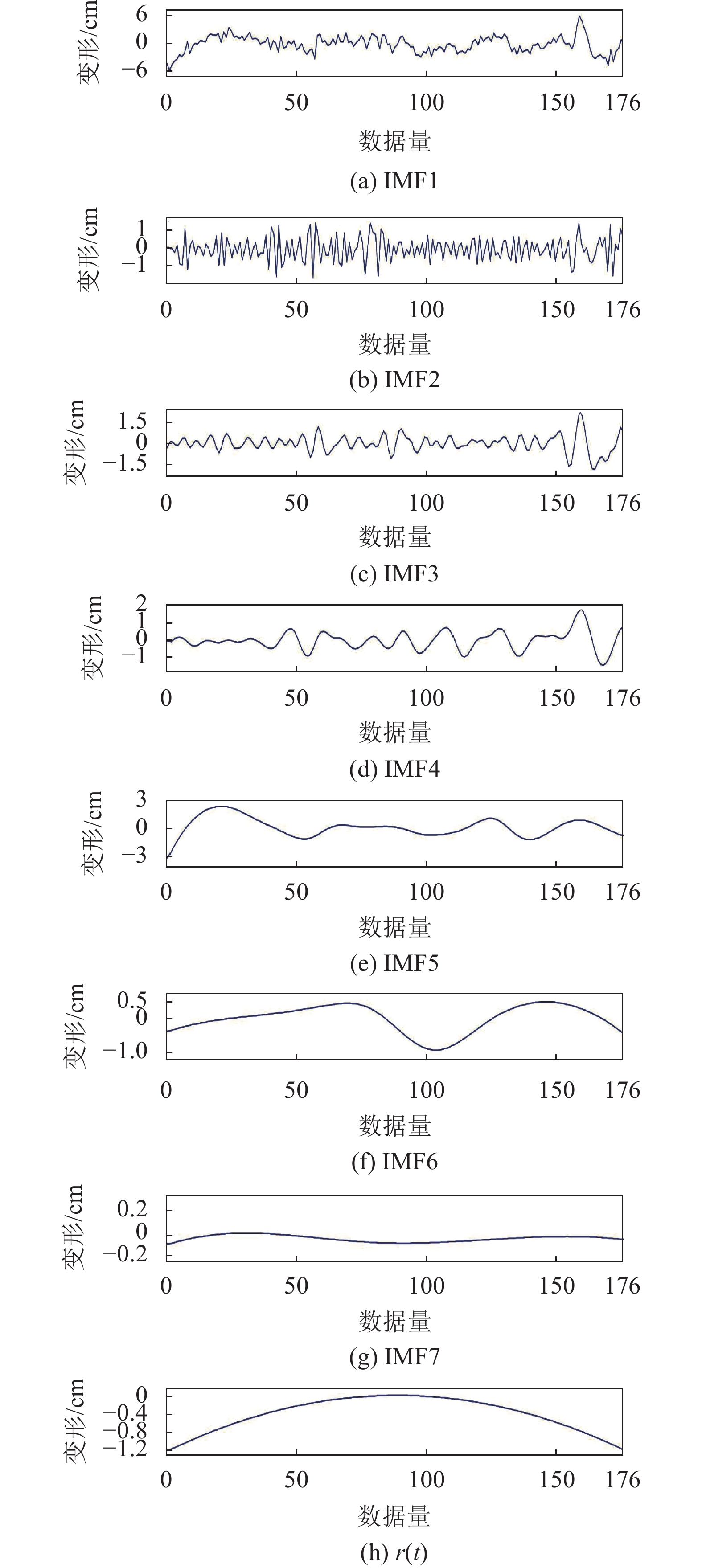 由式(11)求得高低频信号的临界值为js=4,故IMF1~IMF5为高频信号,IMF6~IMF7以及余量