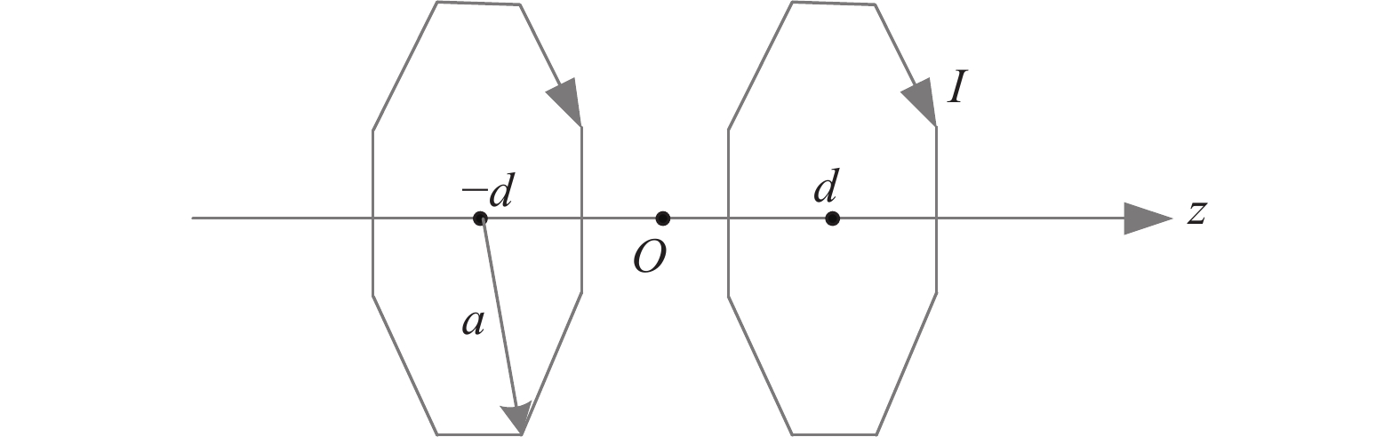 图1是外接圆半径为R的正八边形线圈,线圈中心距原点O距离为d,将磁场看作8段载流直导线产生磁场的叠加,在轴线上任意一点所产生的轴向磁场