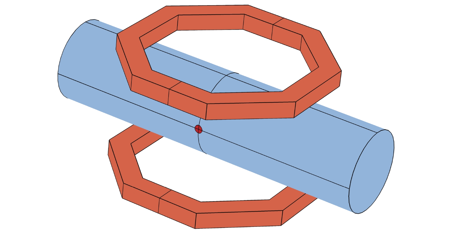电磁流量计常规的圆形线圈和方形线圈都存在磁场强度低、均匀性差的问题,且都属于4阶线圈,要通过结构参数改善其磁场强度、均匀度及增加均匀范围都较为困难[22-24]。通过对圆形线圈和方形线圈磁场理论研究发现,产生高均匀度和高磁场强度的磁场将造成大量线圈材料和空间浪费,而正八边形线圈具有8阶均匀度,能在磁场强度较高的前提下保证高均匀度[25]。因此,将正八边形线圈引入到电磁流量计的励磁结构中,用于产生高均匀度、高磁场强度的磁场。