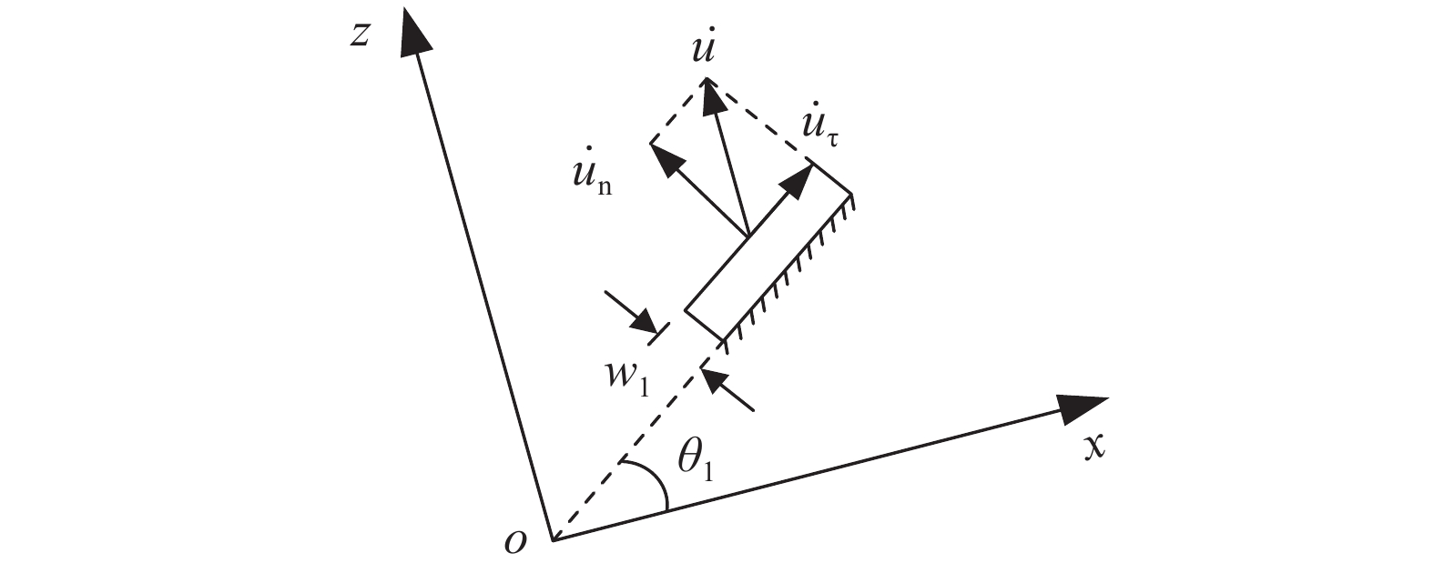 $ {\dot \lambda _1} $ 为:$$ {\dot \lambda _1} = - \left( {\dot u/{w_1}} \right){f'_1}\left( x \right){\left[ {1 + {{f}_1'}{{\left( x \right)}^2}} \right]^{ - 1/2}} $$ (8) 同时,将右侧土体破裂面处正应力与剪应力分别表示为: