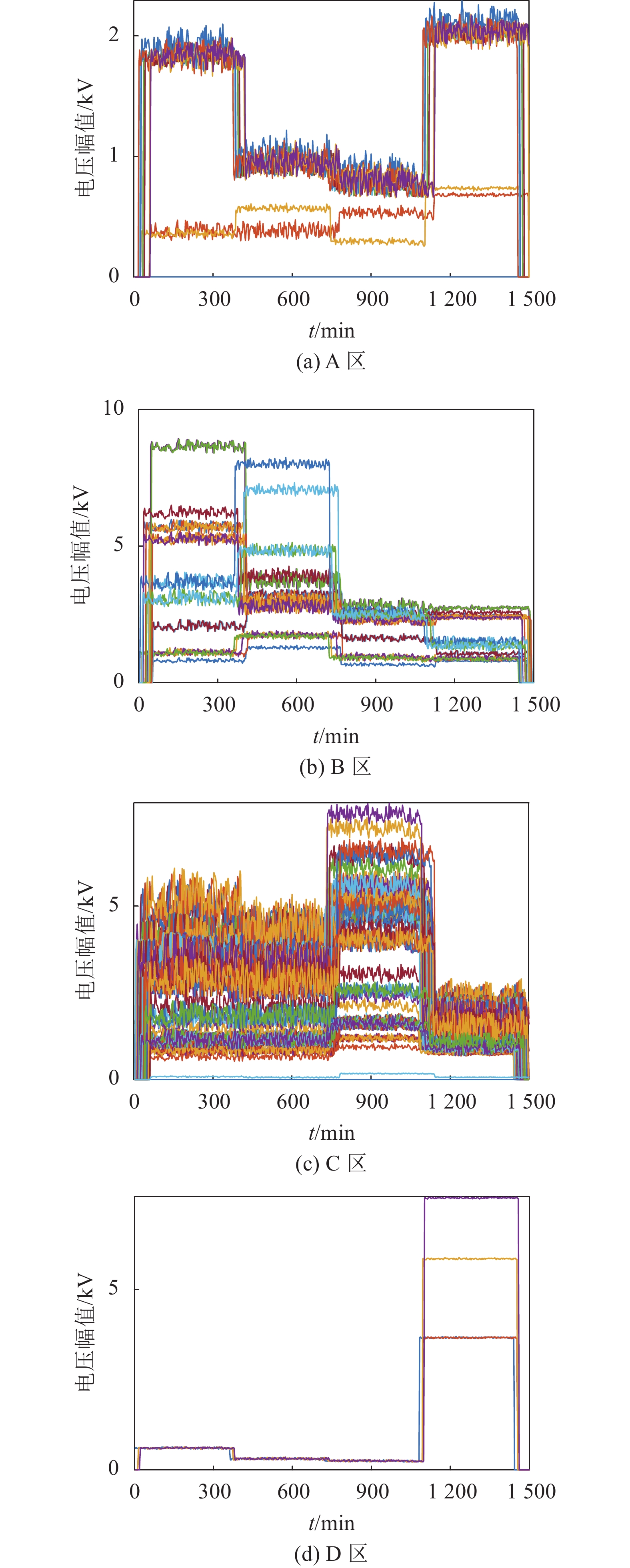 图10中132条曲线对应系统内132个节点。各区域内节点谐波电压波形相似,不同区域间波形差异大,符合聚类原则。
