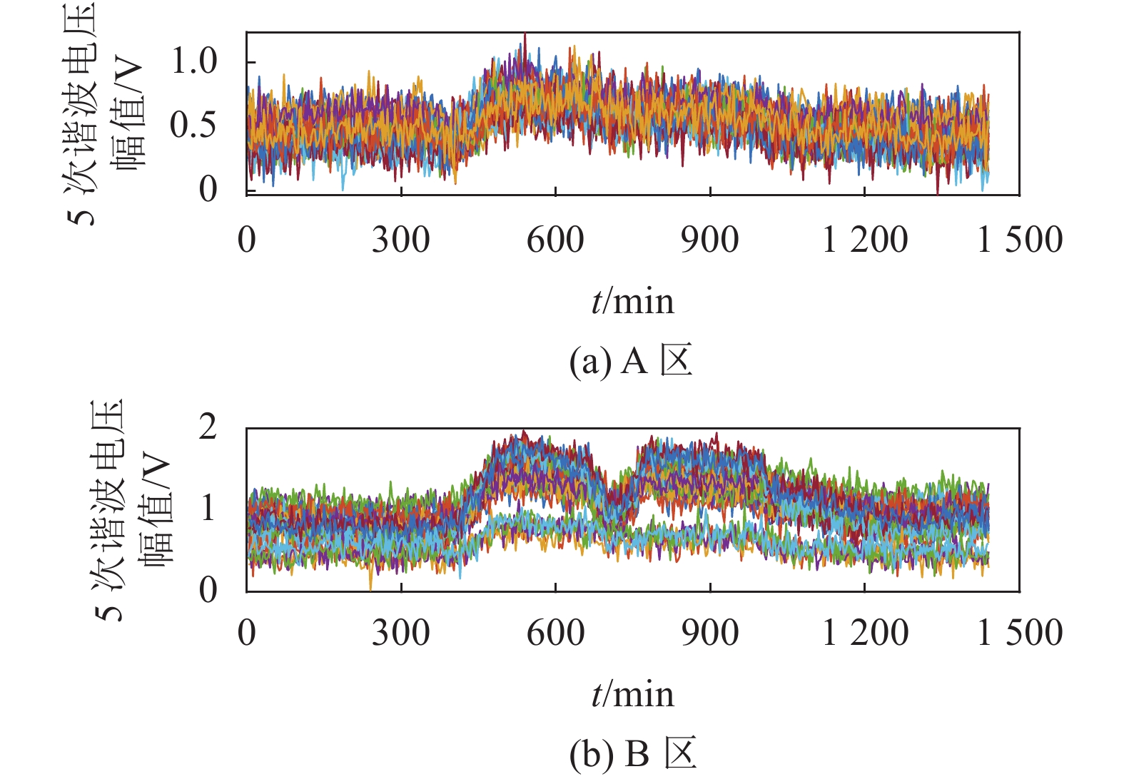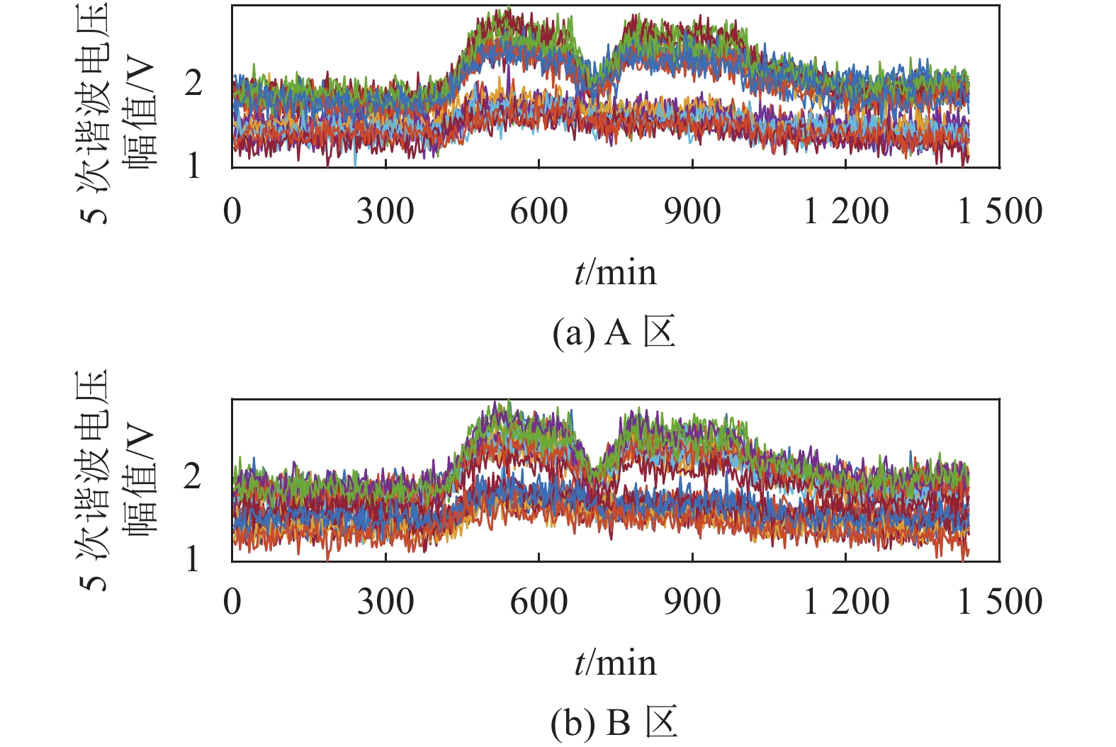 采用kDBA++算法求得各区域节点谐波电压幅值波形,如图10所示。